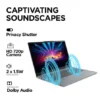• Camera: HD 720p with Privacy Shutter | Fixed Focus | Integrated Dual Array Microphone || Audio: 2x 1.5W Stereo Speakers | HD Audio | Dolby Audio; Ports: 1x USB-A 2 | 1x USB-A 3.2 Gen 1 | 1x USB-C 3.2 Gen 1 (Data transfer, Power Delivery 3 & DisplayPort 1.2) | 1x HDMI 1.4b | 1x Card reader (SD, SDHC, SDXC, MMC) | 1x Headphone/mic combo jack (3.5mm)