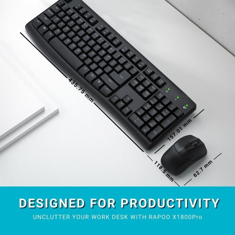 The Rapoo X1800Pro Wireless Keyboard Mouse Combo is a complete plug-and-play wireless desktop solution that combines comfort, durability, and dependable performance for everyday computing tasks. Designed for users who want a clutter-free workspace, this combo offers a seamless wireless experience with an advanced 2.4 GHz connection that delivers stable connectivity at distances of up to 10 meters with 360° coverage, reducing interference and ensuring smooth operation across a range of environments.
